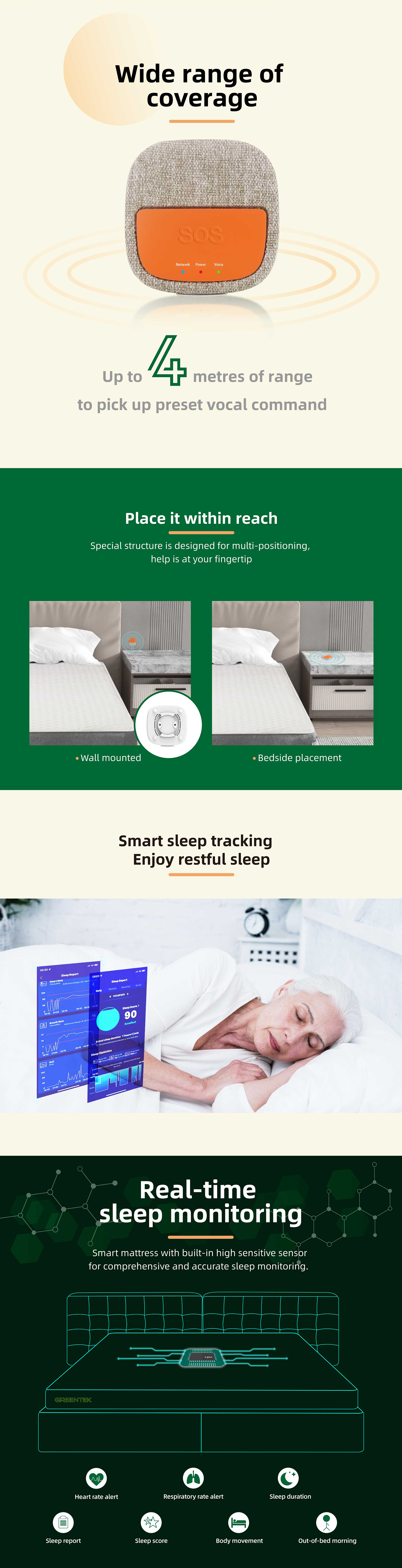 Caretop Sleep Tracking Mattress With Voice-Activated SOS Button